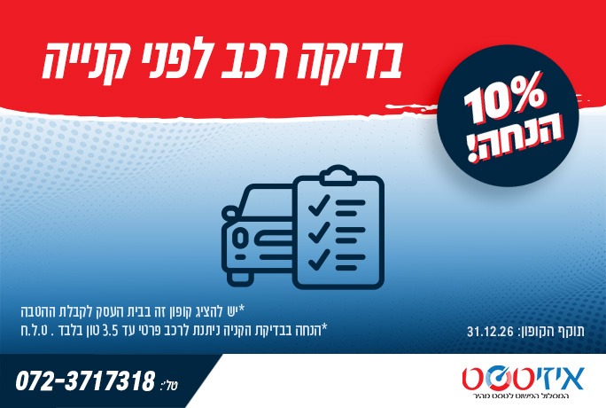 *הנחה בבדיקת הקניה ניתנת לרכב פרטי עד 3.5 טון בלבד